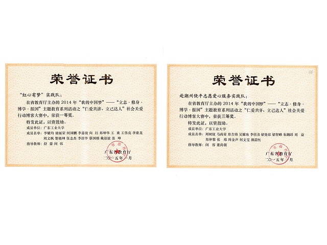 同时,广东省教育厅发布《关于公布“我的中国梦”——“立志·修身·博学·报国”主题教育系列活动评选结果的通知》(粤教思函〔2015〕9号),bw必威西汉姆联官方网站成绩优异,共获得一等奖1项、二等奖3项、三等奖1项、优秀奖2项。