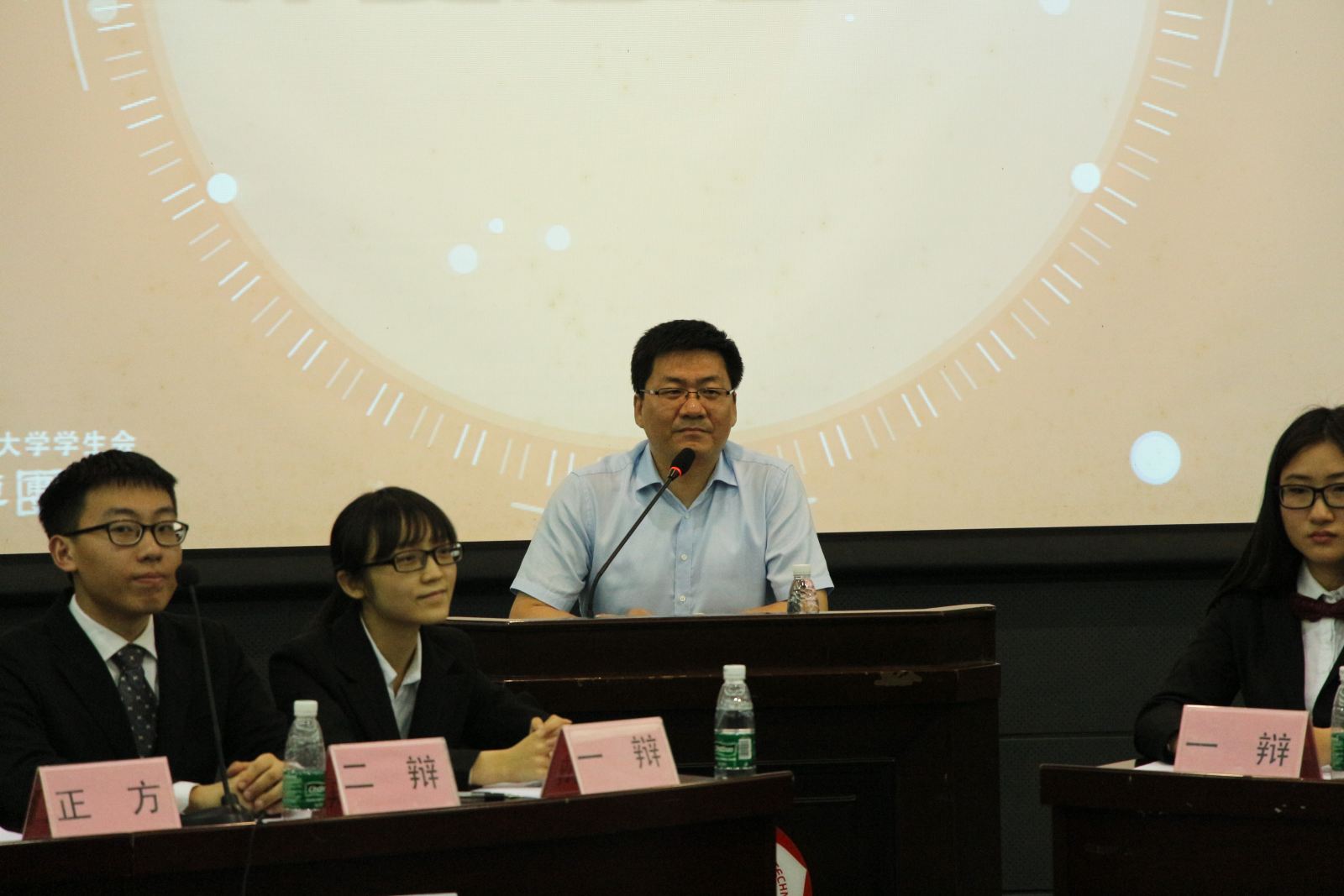 在观众提问环节结束后,各位评委嘉宾结束评议回到现场,并由评委乐云老师对整场比赛进行总结点评。首先他对活跃的现场气氛表示惊喜,然后指出这次的辩题很好——既让对阵双方都有宽广的可辩空间,就业问题又与莘莘学子息息相关,对双方的条理清晰、有破有立表示赞许,同时就双方举例单一等进行指正。最后高度肯定赞扬了双方辩手高度投入,精神饱满的带来了这场精彩的辩论赛,同时他也期待祝愿双方辩论水平节节升高,辩论之路越走越远。