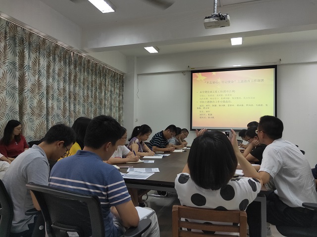 林军首先就学院开展“不忘初心、牢记使命”主题教育做了全面的部署,强调 “不忘初心、牢记使命”主题教育是本学期党建工作的重中之重,并传达了主题教育的重要意义。他要求全体党员干部要结合学院工作实际,深刻领会主题的教育“守初心、担使命、找差距、抓落实”的总要求,准确把握主题教育“理论学习有收获、思想政治受洗礼、干事创业敢担当、为民服务解难题”的具体目标,并就学院主题教育工作计划作了说明。