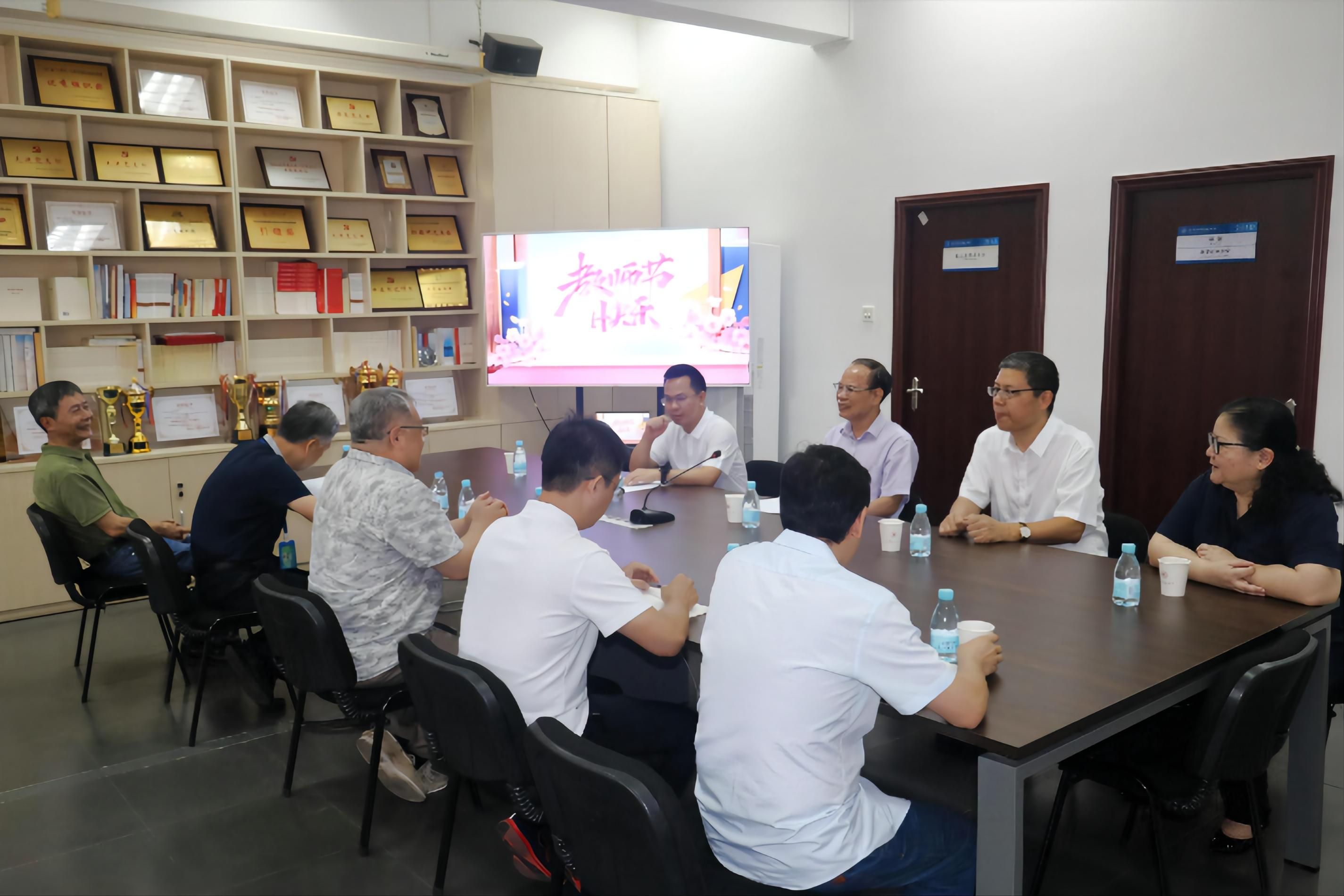 晨曦白露育桃李,金秋硕果慰园丁。在第38个教师节来临之际,9月7日上午,邱学青校长一行来bw必威西汉姆联官方网站开展教师节慰问活动,向学院全体教职员工致以亲切的问候和诚挚的节日祝福,与学院优秀教师代表黄少铭教授、闵永刚教授、芮先宏教授和谭剑波教授进行交流座谈。学校党委办公室、校长办公室主任植林、人事处处长刘三林等同志参加了慰问调研活动。