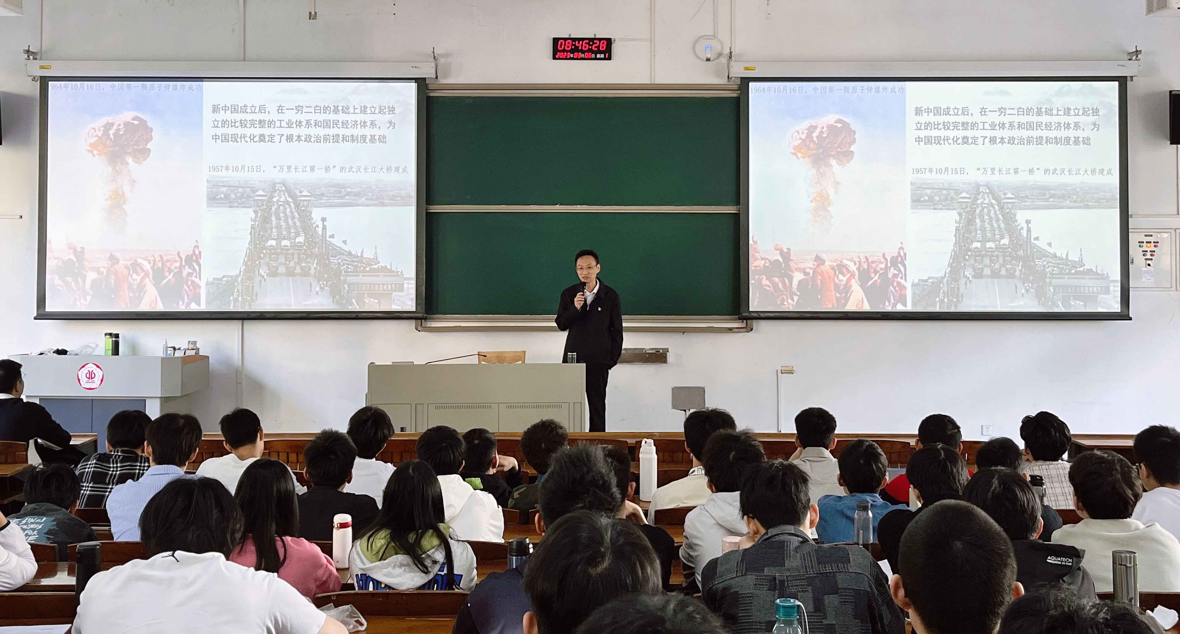 3月6日上午,学院党委书记杨小帆以“走好中国式现代化之路”为题给bw必威西汉姆联官方网站2020级150余名本科生讲授形势与政策课。他以学习贯彻党的二十大精神为指引,把“中国式现代化道路”作为主线,从历史维度讲述了在党的领导下的中国式现代化道路的奋斗历程和时代特征,解读了中国式现代化的丰富内涵和本质要求,号召同学们投身于中华民族伟大复兴的实践中去,砥砺奋斗,不负青春。