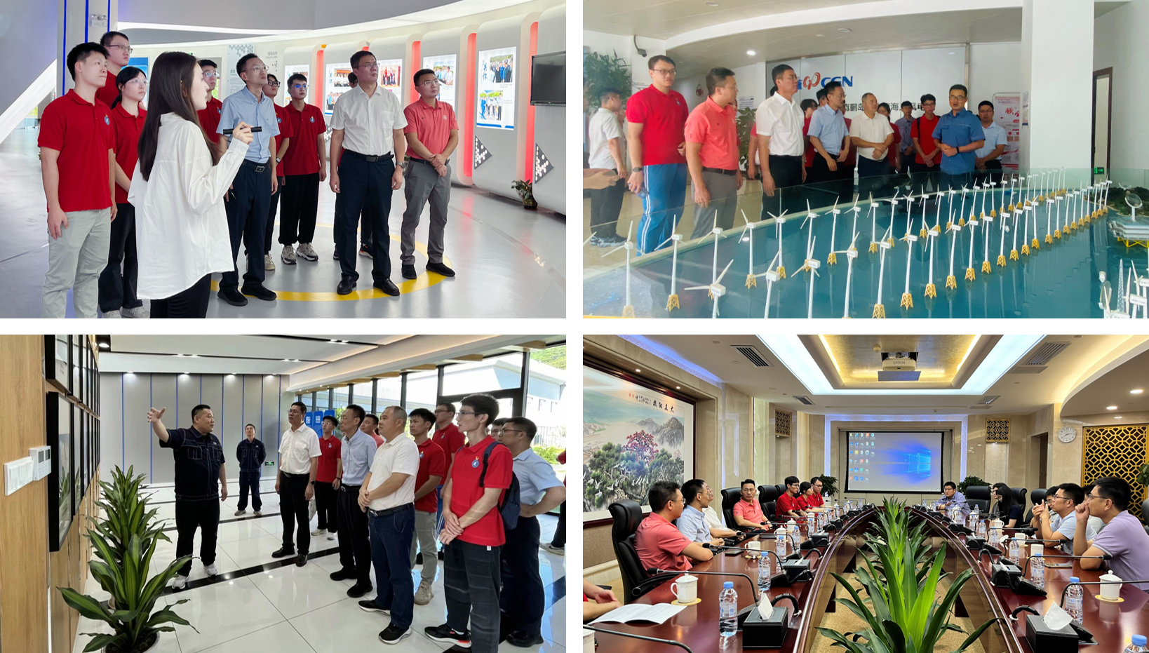 7月21日,学校教务处处长王振友、学院党委书记杨小帆、副书记汤猛、学院新能源科学与工程系主任蔡伟通与实践队一同参观阳江中广核爱国主义教育基地、珍珠湾海上风电场及阳江中节能,并与阳东区委书记李坤及企业代表进行了深入座谈交流,为进一步做好产学研合作奠定了良好基础。
