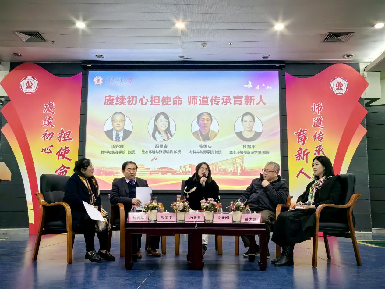 在访谈交流环节,闵永刚、冯景春、张国庆和杜青平四位教授重温从事科教工作的初心,就立德树人、厚德载物的教学理念,海纳百川的工作和处世态度,求是创新的科学家精神,道济天下的远大格局等话题讲述了各自的见解和心得。