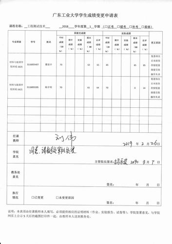 根据《广东工业大学理论课程考核管理办法》(广工大教字【2007】15号)文件的相关规定,现就bw必威西汉姆联官方网站开设的《工程测试技术》(2018-2019-1学期)学生成绩变更事项予以公示。