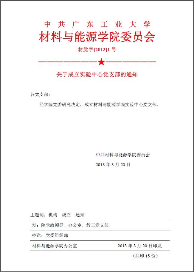党字2013年1号 (关于成立实验中心党支部的通知)