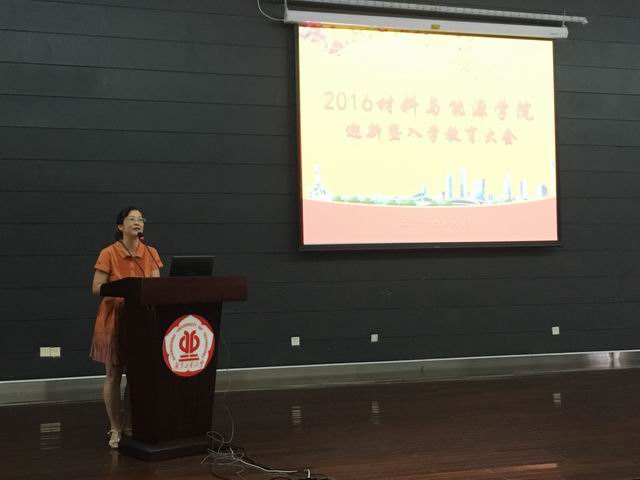 院长陈颖教授首先致辞欢迎2016级新同学,她从材能学院的历史沿革、学院领导、学科实力、科研发展、就业前景等等方面为新生描绘了材能学科的宏伟蓝图,祈盼16级学子鹏程万里,学成报效祖国;院长助理李风教授从基础学科到专业课程、从日常学习到实践环节,循循善诱,深入浅出,为新生作大学四年的学习规划指引;英健文副书记则从独立人格和自我提升角度与新生们一起探讨了大学期间的思想学习和生活方方面面的细节,并从人生信仰追求角度作了党课启蒙;学生处心理咨询中心的蒋玉露老师则通过丰富的图文和视频从健康心理的切入点与大家探讨了助人自助的重要和快乐;优秀学生代表13级李惠兰同学分享了她大学三年来从专业学习到科研实践的点点滴滴,祝福16级新生学有所成,全面发展。