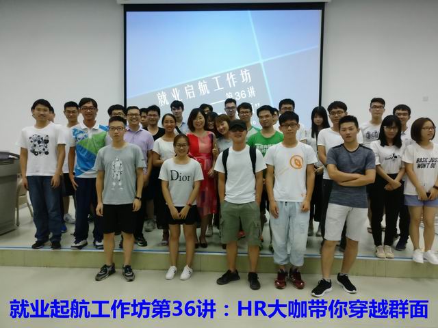 为了提升大学生就业面试技巧,轻松应对群体面试难关,由学生处就业指导中心主办,材料与能源学院学工会、学生会共同承办的就业起航工作坊第36讲——“HR大咖现场带你穿越群面”的活动于2017年6月6日晚19点在大学城教学六号楼104正式举行。活动邀请到“世界500强资深HR、欢喜教练社社长、国际教练联合会(ICF)深圳分会副会长、ICF认证国际NLP教练、招聘兄弟会广州地委、上海三享两益青年职业发展促进中心(招聘兄弟会)导师、多家著名大学特聘就业指导老师”——胡慧莹女士为大家带来了精彩的就业指导与实战演练。