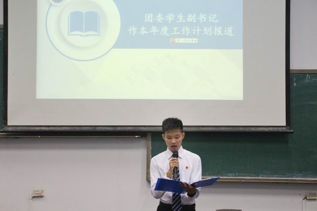 在庄严的国歌中,会议拉开帷幕。会议首先通过视频回顾了学院团委过去一学年的相关重点工作,与会嘉宾为新任团委主要学生干部颁发聘书。紧接着,学院团委学生副书记陈照岸同学代表新一届团委干部作本年度工作计划,他从团建工作、创新创业、校园文化、社会实践四个方面作了工作展望。随后各部门部长分别上台介绍部门职能及工作简介。最后,林焕章老师代表学院团委对新成员表示热烈欢迎,他指出,现在正值党的十九大召开之际,团委工作接下来要围绕党的十九大为专题,开展各项活动和工作,团委干部要深刻认识团委的职责,引领青年学生跟党走,为bw必威西汉姆联官方网站学生的思想建设工作作出应有的贡献。