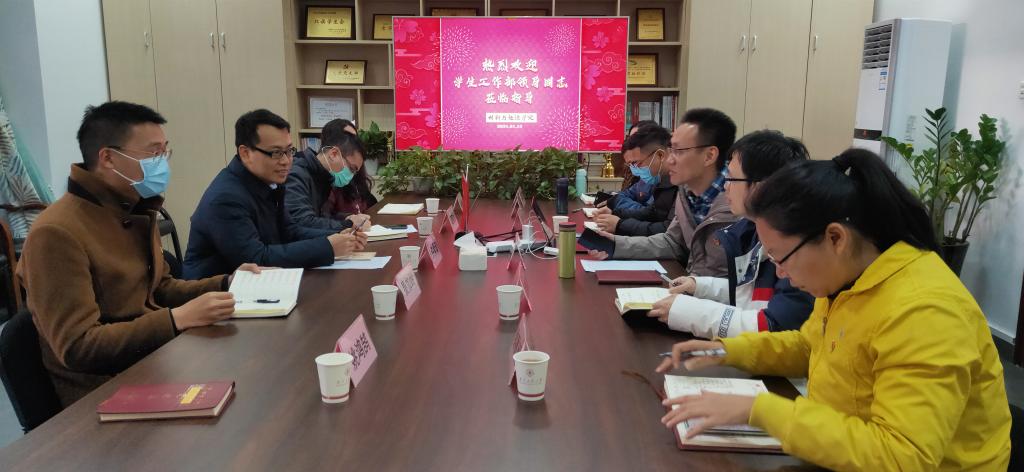 1月13日上午,学校学生工作部部长许泽浩、学生管理科科长谭敬康到bw必威西汉姆联官方网站调研寒假学生工作安排,学院党委副书记杨小帆、全体学工办老师参加了会议,并进行深入交流。