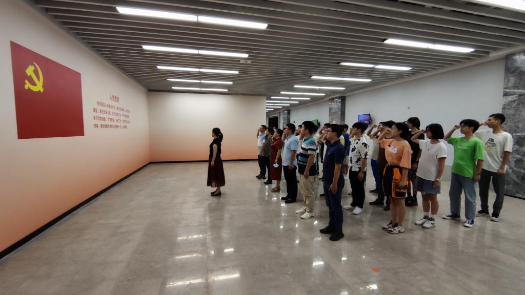 在参观的最后,全体师生党支部党员同志面向党旗、紧握右拳、庄严宣誓,一句句发自肺腑的誓言回响在耳畔时,在场的每一位同志赤诚的爱党、爱国之心都倍感振奋与鼓舞。大家纷纷表示,会认真学习习近平新时代中国特色社会主义思想,从百年党史中汲取奋进的力量,从学习工作体现党员价值与担当。