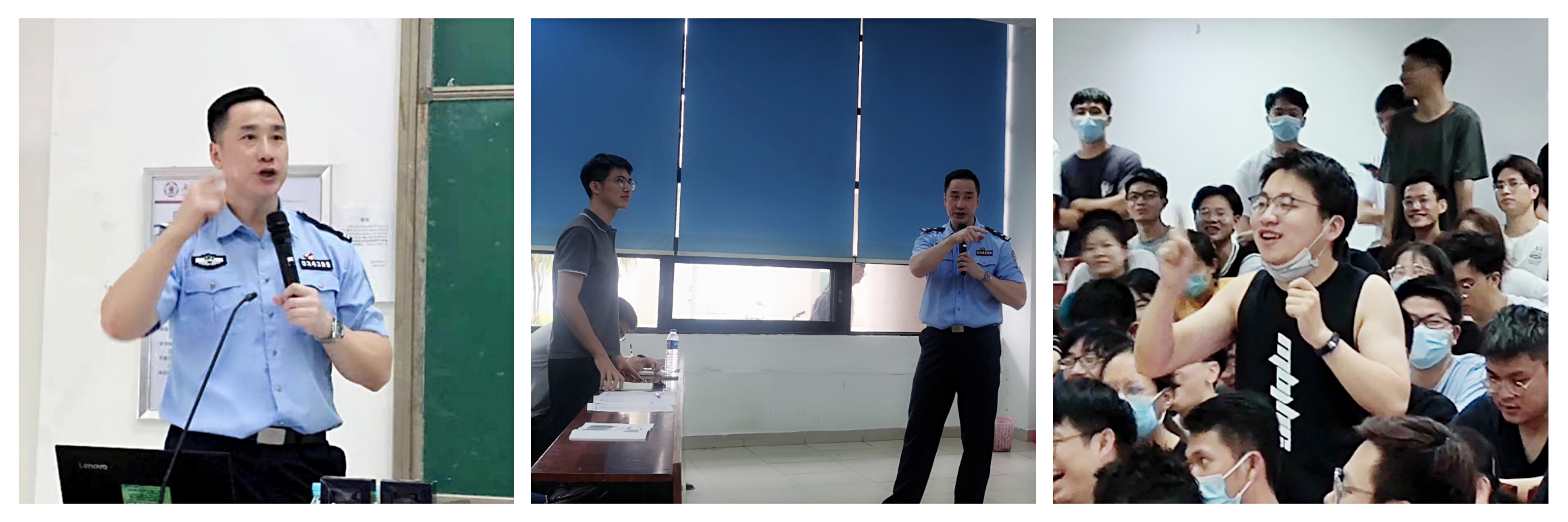 讲座上,王鑫警官结合近年来电信诈骗犯罪高发的客观形势和发生的电信诈骗典型案件,有针对性地讲解了电信诈骗的概念与特点,电信诈骗的常见手法以及如何精准识别电信诈骗。他深入浅出地解析常见诈骗类型和总结防范要点,采用情境模拟的形式,结合幽默风趣的语言风格,讲座现场代入感、互动感强,切实强化学生反诈防骗意识,提高学生识骗防骗本领。