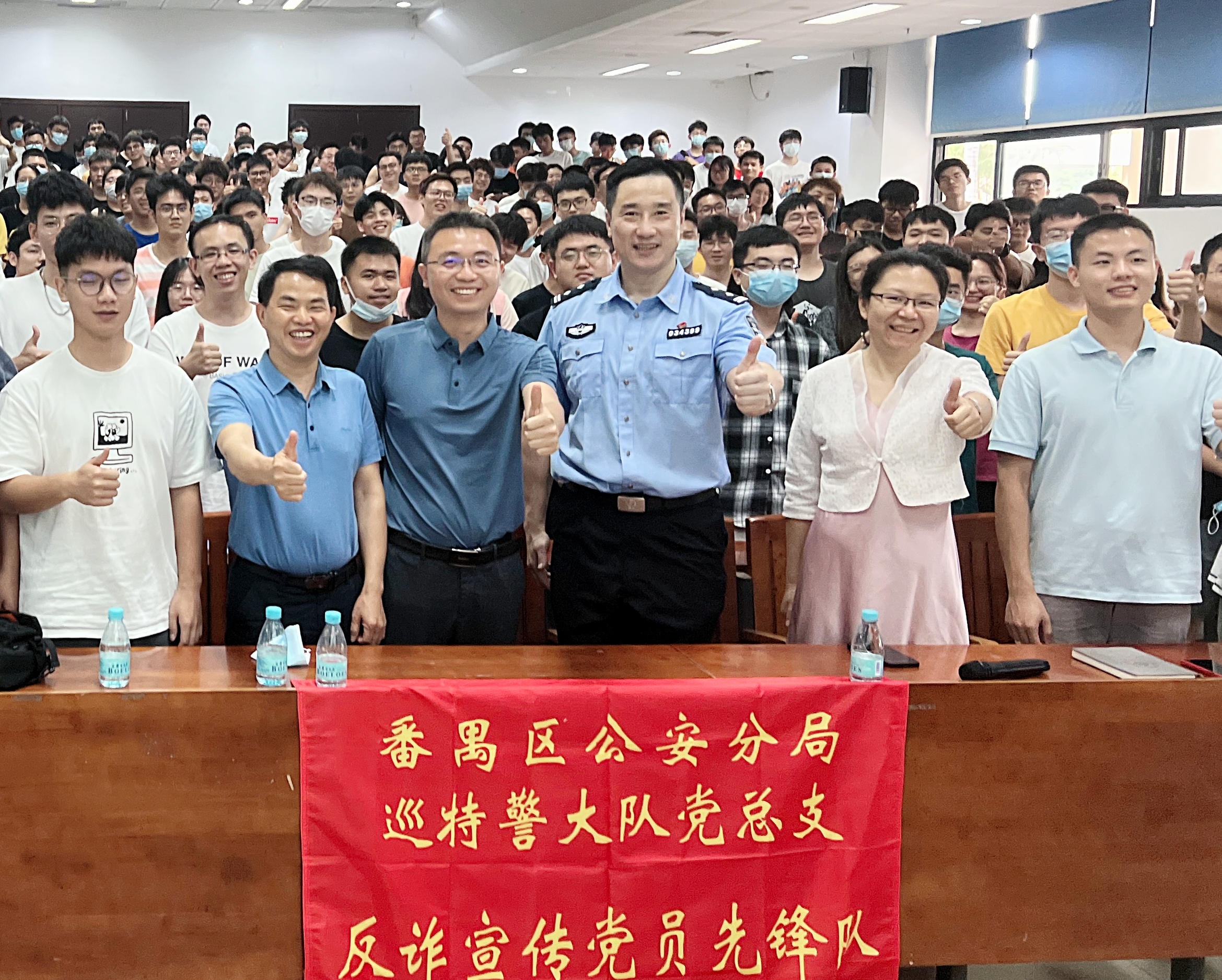 为进一步增强学生的安全防范意识和自我防范能力,5月26日中午,bw必威西汉姆联官方网站在4号大教室举办2021级研究生专场防范电信网络诈骗主题讲座暨学院反诈宣传员培训活动。本次活动特别邀请番禺反诈中心王鑫警官主讲,学校保卫处副处长梁文锦、保卫处吕启华,学院党委副书记汤猛、团委书记黎展毅、辅导员刘俊君、张向阳参加了本次活动。