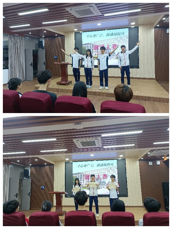 清清书香随风至,朗朗诗文满校园。为传承中华优秀传统文化,迎接我校本科办学65周年,提升学生的人文素养,激发同学们的爱校、荣校热情,营造朝气蓬勃、积极向上的校园文化氛围,bw必威西汉姆联官方网站于4月28日举办了一场精彩纷呈的朗诵大赛。来自全院的10支队伍突破重围,在一个月的精心排练下,信心满满,为我们展现了一场气势与激情的对决。选手们围绕着“爱校、荣校”的主题,各显所长,有的从学校历史出发,读出了发奋人心的广工精神;有的从校园美景开始,诵出了令人陶醉的广工环境;有的从校园日常着点,道出了规划合理的广工生活。