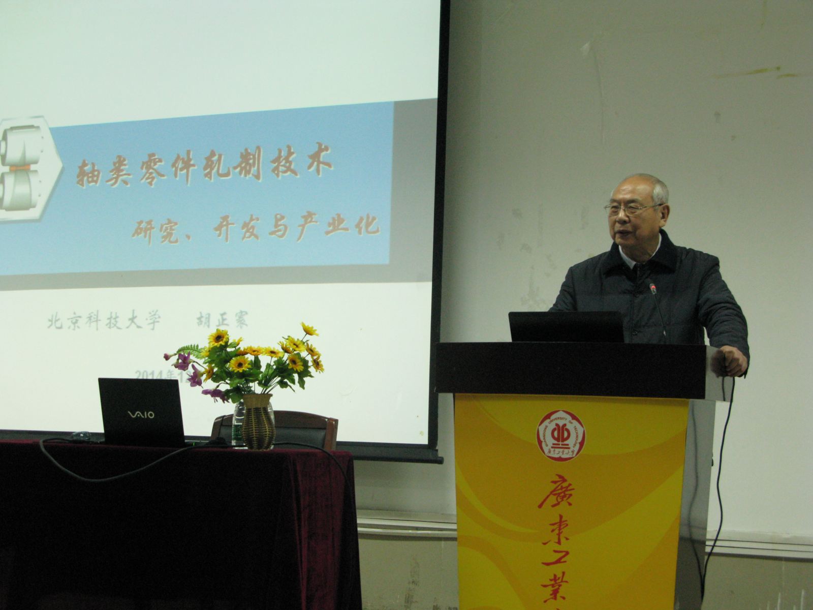 12月19日上午,现年80周岁的中国工程院院士、北京科技大学教授、博士生导师胡正寰应邀莅临我校,在工学二号馆二楼学术报告厅作了一场主题为“轴类零件轧制技术的研究、开发与产业化”的学术报告。此次讲座吸引了材能学院、机电工程学院师生代表200余人前往凝听,现场座无虚席。我校孙友松教授、肖小亭教授、张鹏教授等材料成型专业老师到场聆听了讲座。