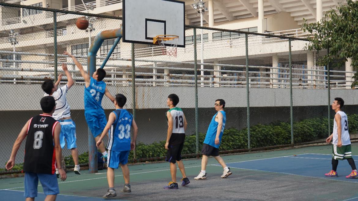 在“友谊第一,比赛第二”的气氛中,比赛正式拉开帷幕。四月的广州,炎炎烈日,露天的赛场似乎冒着青烟,但这并没有影响师生们的参赛热情。在比赛的过程中,场上的队员们奋力拼搏,打的异常精彩。导师队凭借过人的技术,娴熟的配合,精准的投射,频频进球,充分显示了教师们的风采。初生牛犊不怕虎,学生队也不甘示弱,积极的跑动,敢打敢拼。虽然,学生队在技术上稍逊几分,但凭着年轻人的旺盛精力,比分紧跟着导师队。场下观众们也是热情似火,不时为场上队员鼓掌喝彩加油,气氛之热烈不输于场上。在激烈对抗的同时,赛场内外不时传出参赛师生的欢笑声,大家都尽情享受着比赛的过程,享受着运动带来的乐趣。赛场上,师生们各显身手,用娴熟的技术和默契的配合演绎出一个又一个美丽瞬间。最终,导师队小胜学生队,师生们的精彩表现赢得了每一位在场观众称赞。
