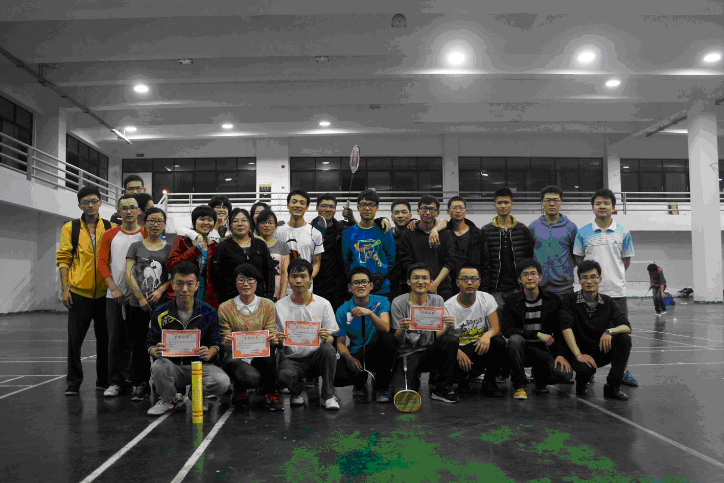 赛事分为男单、女单、混双三个项目,首轮比赛采用分组淘汰制方式,11分制,三局两胜;决赛采用21分制,三局两胜。场上队员们奋力拼搏,场下拉拉队们欢呼呐喊,比赛精彩纷呈,紧张激烈。最终,热能队与微电子队在淘汰赛中突围而出,会师最后的冠军争夺赛。冠军之争把整个赛事推向了高潮,选手们使出浑身解数,争杀每一分;来自热能队的男单选手黎天标同学,其精湛的球技,如点杀、劈吊、后杀斜线、追身球,一一精彩呈现,羡煞全场。最终,热能代表队获得团体冠军,黎天标和王龙娟同学分获男女最佳运动员;微电子队则获得最佳精神文明奖。
