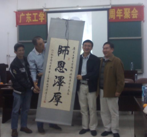 为了表示母校的栽培之恩,同学们特向学院赠送了字幅“师恩泽厚”;学院回赠了校友纪念册。